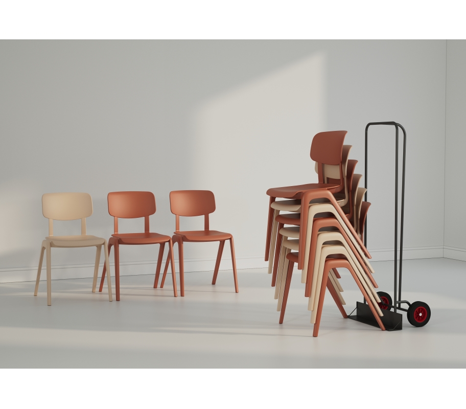 Empilabilité : S'empile jusqu'à 6 chaises au sol et sur chariot.
