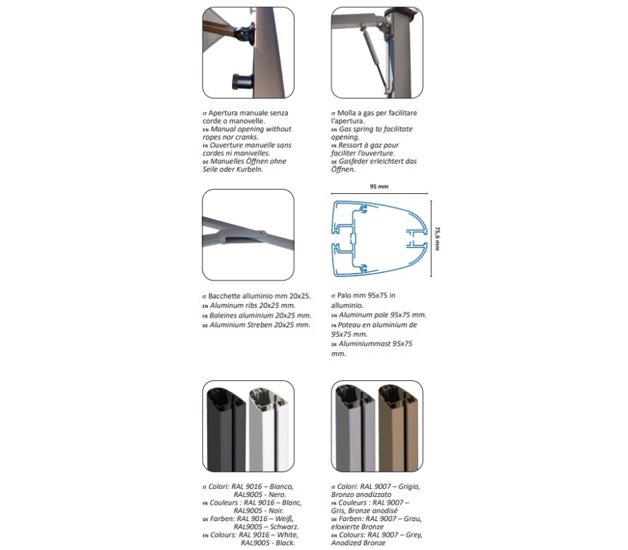 - Option : Volant (pour une protection supplémentaire contre le soleil et la pluie)
