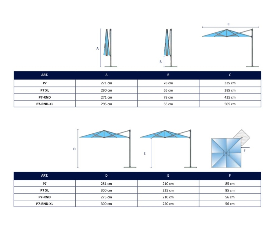 - P7 : 271 cm (hauteur) x 78 cm (hauteur) x 335 cm (largeur)