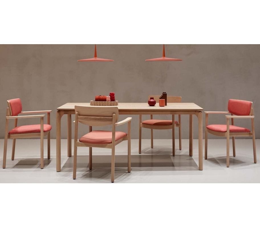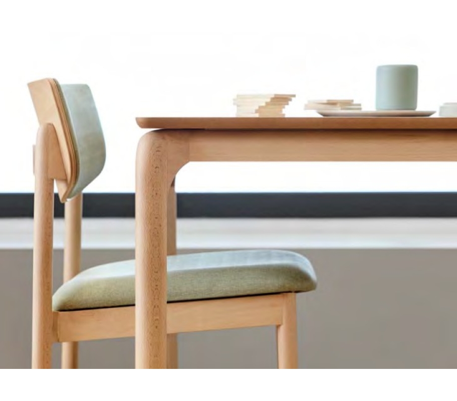 Structure: Le cadre est en tube d’acier avec une finition peinture époxy, revêtu de moulures en bois de hêtre massif. Les pieds sont en hêtre massif et sont fixés à la structure par des vis internes.