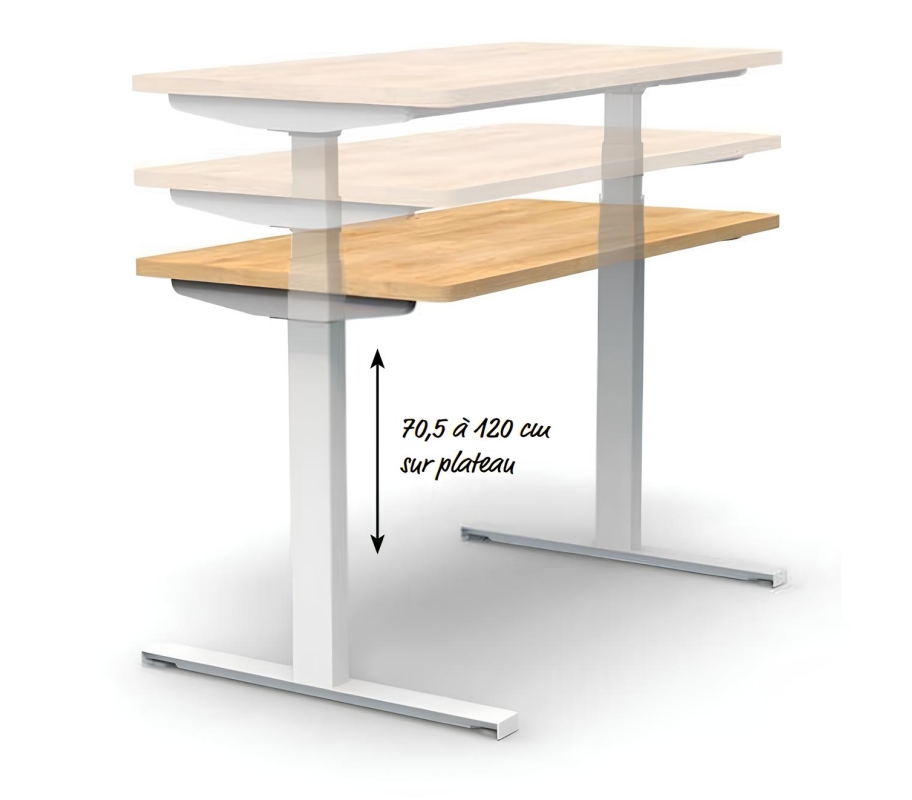 Plage de réglage : De 70,5 à 120 cm (mesure prise sur le plateau).